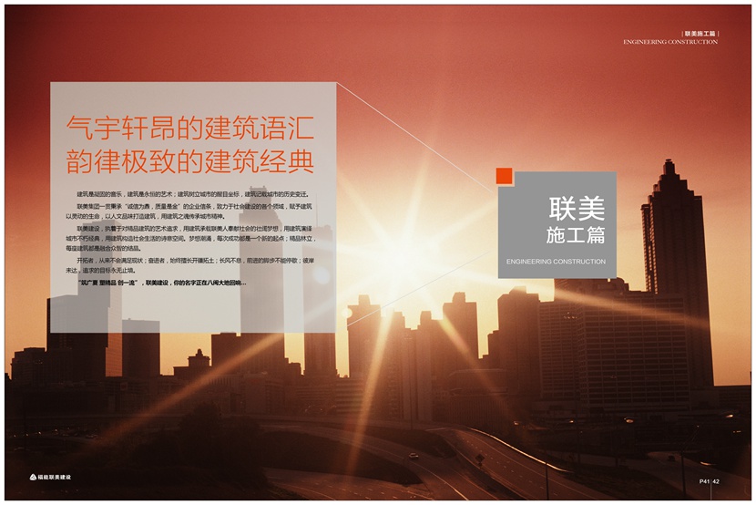 聯(lián)美集團(tuán)擁有建筑施工總承包一級資質(zhì),同時具有房屋建筑工程總承包一級、建筑裝修裝飾工程專業(yè)承包一級、起重設(shè)備安裝工程專業(yè)承包一級、鋼結(jié)構(gòu)工程專業(yè)承包二級、建筑機(jī)電安裝工程專業(yè)承包一級、市政公用工程施工總承包三級、地基基礎(chǔ)工程專業(yè)承包一級、建筑裝飾工程設(shè)計專項甲級等資質(zhì)。建筑施工代表工程有:福建煤炭大廈、廈門香山國際游艇俱樂部、廈門東方巴黎廣場、廈門南湖中祥大廈、廈門中南商業(yè)廣場、廈門翔安火炬園、廈門聯(lián)通大廈、廈門華天涉外學(xué)院、廈大漳州分校教學(xué)樓、福州美倫.華美達(dá)大飯店、福州仁文.大儒世家、龍巖坑口電廠、石獅熱電廠、龍巖煙草大廈、三明工商大樓、邵武名仕豪庭,武夷山聚緣大酒店、福建省礦山建設(shè)項目等。